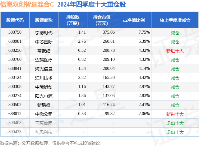 证券之星消息,日前信澳双创智选混合C基金公布四季报,2024年四季度最新规模0.24亿元,季度净值涨幅为10.99%。