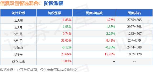 从业绩表现来看,信澳双创智选混合C基金过去一年净值涨幅为23.66%,在同类基金中排名1032/4120,同类基金过去一年净值涨幅中位数为15.28%。而基金过去一年的最大回撤为-16.52%,成立以来的最大回撤为-20.13%。