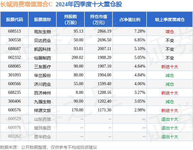 证券之星消息,日前长城消费增值混合C基金公布四季报,2024年四季度最新规模0.0亿元,季度净值涨幅为-10.45%。