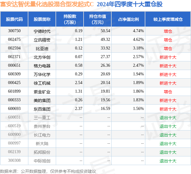 证券之星消息,日前富安达智优量化选股混合型发起式C基金公布四季报,2024年四季度最新规模0.0亿元,季度净值涨幅为4.06%。