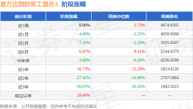 从业绩表现来看,易方达国防军工混合A基金过去一年净值涨幅为16.73%,在同类基金中排名1853/4120,同类基金过去一年净值涨幅中位数为15.28%。而基金过去一年的最大回撤为-16.55%,成立以来的最大回撤为-54.39%。