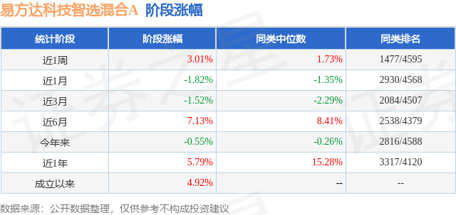 从业绩表现来看,易方达科技智选混合A基金过去一年净值涨幅为5.79%,在同类基金中排名3317/4120,同类基金过去一年净值涨幅中位数为15.28%。而基金过去一年的最大回撤为-14.92%,成立以来的最大回撤为-14.92%。
