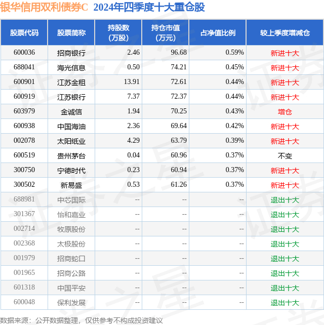 证券之星消息,日前银华信用双利债券C基金公布四季报,2024年四季度最新规模0.62亿元,季度净值涨幅为1.24%。