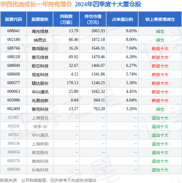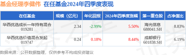 证券之星消息,日前华西优选成长一年持有混合基金公布四季报,2024年四季度最新规模2.34亿元,季度净值涨幅为5.5%。