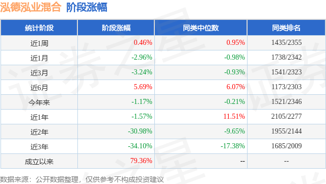 从业绩表现来看,泓德泓业混合基金过去一年净值涨幅为-1.57%,在同类基金中排名2105/2277,同类基金过去一年净值涨幅中位数为11.51%。而基金过去一年的最大回撤为-19.16%,成立以来的最大回撤为-46.37%。