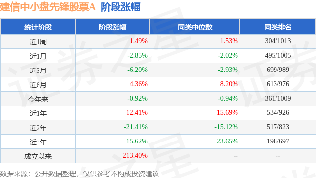 从业绩表现来看,建信中小盘先锋股票A基金过去一年净值涨幅为12.41%,在同类基金中排名534/926,同类基金过去一年净值涨幅中位数为15.69%。而基金过去一年的最大回撤为-16.48%,成立以来的最大回撤为-53.18%。