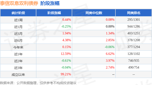 从业绩表现来看,泰信双息双利债券基金过去一年净值涨幅为12.59%,在同类基金中排名128/1102,同类基金过去一年净值涨幅中位数为6.62%。而基金过去一年的最大回撤为-6.4%,成立以来的最大回撤为-18.36%。