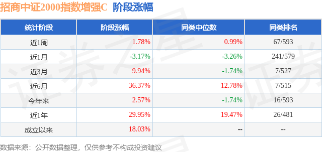 从业绩表现来看,招商中证2000指数增强C基金过去一年净值涨幅为29.95%,在同类基金中排名26/481,同类基金过去一年净值涨幅中位数为19.47%。而基金过去一年的最大回撤为-24.94%,成立以来的最大回撤为-28.4%。