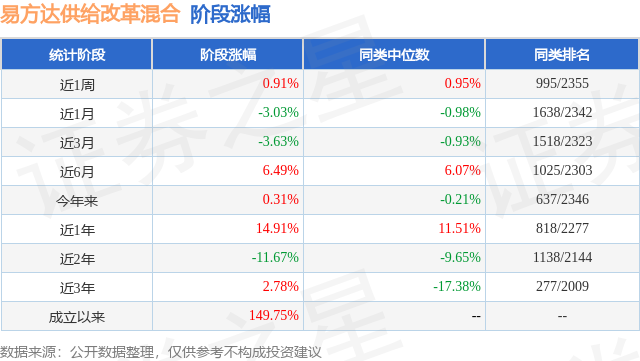 从业绩表现来看,易方达供给改革混合基金过去一年净值涨幅为14.91%,在同类基金中排名818/2277,同类基金过去一年净值涨幅中位数为11.51%。而基金过去一年的最大回撤为-20.13%,成立以来的最大回撤为-40.13%。