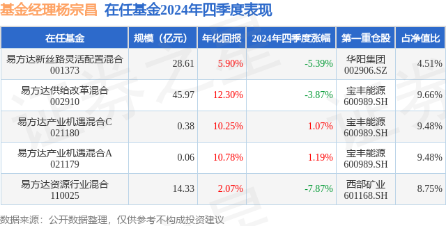 易方达供给改革混合现任基金经理为杨宗昌。其中在任基金经理杨宗昌已从业5年又277天,2019年4月23日正式接手管理易方达供给改革混合,任职期间累计回报为176.6%。目前还管理着5只基金产品(包括A类和C类),其中本季度表现最佳的基金为易方达产业机遇混合A(021179),季度净值涨幅为1.19%。