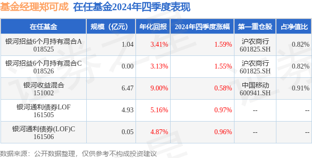 证券之星消息,日前银河收益混合基金公布四季报,2024年四季度最新规模6.47亿元,季度净值涨幅为0.58%。