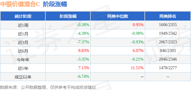 从业绩表现来看,中银价值混合C基金过去一年净值涨幅为7.13%,在同类基金中排名1478/2277,同类基金过去一年净值涨幅中位数为11.51%。而基金过去一年的最大回撤为-14.7%,成立以来的最大回撤为-22.57%。