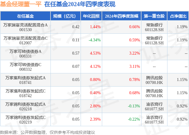证券之星消息,日前万家锦利债券发起式A基金公布四季报,2024年四季度最新规模0.05亿元,季度净值涨幅为-0.13%。