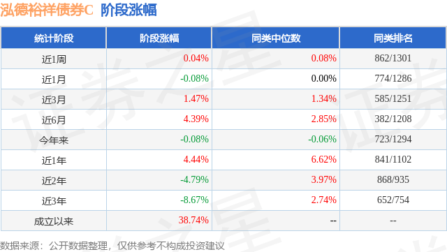 从业绩表现来看,泓德裕祥债券C基金过去一年净值涨幅为4.44%,在同类基金中排名841/1102,同类基金过去一年净值涨幅中位数为6.62%。而基金过去一年的最大回撤为-7.88%,成立以来的最大回撤为-16.62%。