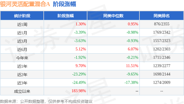 从业绩表现来看,银河灵活配置混合A基金过去一年净值涨幅为9.7%,在同类基金中排名1239/2277,同类基金过去一年净值涨幅中位数为11.51%。而基金过去一年的最大回撤为-12.79%,成立以来的最大回撤为-53.45%。