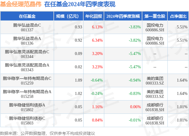 鹏华稳健恒利债券C现任基金经理为范晶伟。其中在任基金经理范晶伟已从业3年又170天,2023年1月18日正式接手管理鹏华稳健恒利债券C,任职期间累计回报为1.7%。目前还管理着8只基金产品(包括A类和C类),其中本季度表现最佳的基金为鹏华稳健恒利债券A(015802),季度净值涨幅为0.06%。