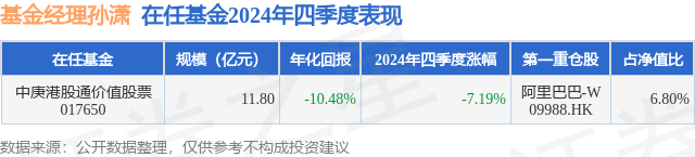证券之星消息,日前中庚港股通价值股票基金公布四季报,2024年四季度最新规模11.8亿元,季度净值涨幅为-7.19%。