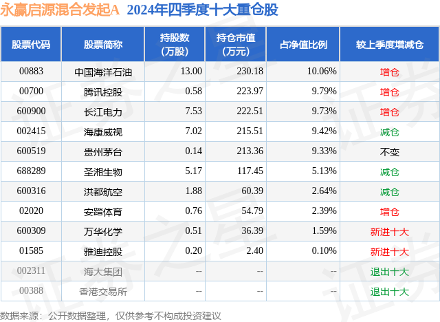 证券之星消息,日前永赢启源混合发起A基金公布四季报,2024年四季度最新规模0.23亿元,季度净值涨幅为2.18%。