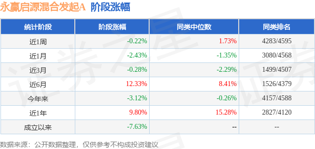 从业绩表现来看,永赢启源混合发起A基金过去一年净值涨幅为9.8%,在同类基金中排名2827/4120,同类基金过去一年净值涨幅中位数为15.28%。而基金过去一年的最大回撤为-15.65%,成立以来的最大回撤为-23.53%。