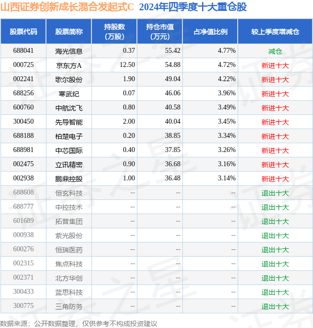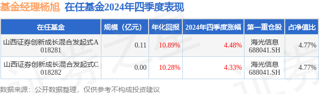 证券之星消息,日前山西证券创新成长混合发起式C基金公布四季报,2024年四季度最新规模0.0亿元,季度净值涨幅为4.33%。