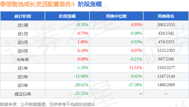 从业绩表现来看,泰信智选成长灵活配置混合A基金过去一年净值涨幅为-1.18%,在同类基金中排名2103/2277,同类基金过去一年净值涨幅中位数为11.51%。而基金过去一年的最大回撤为-22.56%,成立以来的最大回撤为-46.89%。