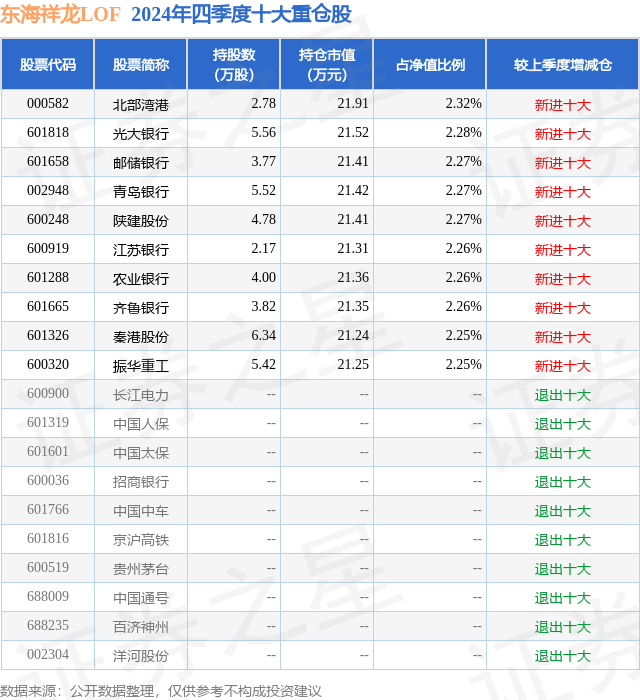 证券之星消息,日前东海祥龙LOF基金公布四季报,2024年四季度最新规模0.09亿元,季度净值涨幅为-1.95%。