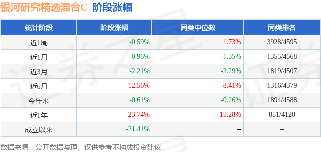 从业绩表现来看,银河研究精选混合C基金过去一年净值涨幅为23.74%,在同类基金中排名851/4120,同类基金过去一年净值涨幅中位数为15.28%。而基金过去一年的最大回撤为-14.33%,成立以来的最大回撤为-43.01%。