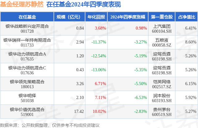 证券之星消息,日前银华动力领航混合C基金公布四季报,2024年四季度最新规模0.43亿元,季度净值涨幅为-5.35%。