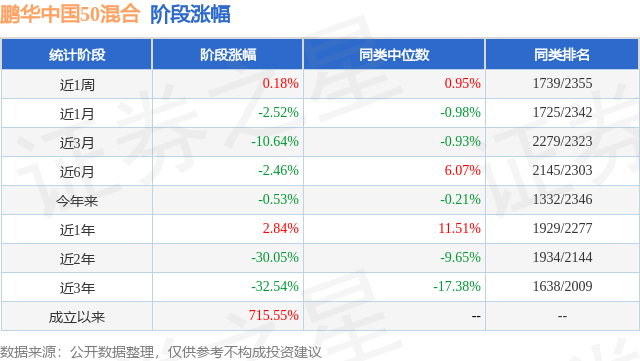 从业绩表现来看,鹏华中国50混合基金过去一年净值涨幅为2.84%,在同类基金中排名1929/2277,同类基金过去一年净值涨幅中位数为11.51%。而基金过去一年的最大回撤为-20.2%,成立以来的最大回撤为-59.23%。