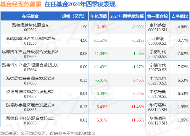 泓德数字经济混合发起式C现任基金经理为苏昌景 张天洋。其中在任基金经理苏昌景已从业8年又271天,2023年9月6日正式接手管理泓德数字经济混合发起式C,任职期间累计回报为8.38%。目前还管理着8只基金产品(包括A类和C类),其中本季度表现最佳的基金为泓德数字经济混合发起式A(018865),季度净值涨幅为11.46%。