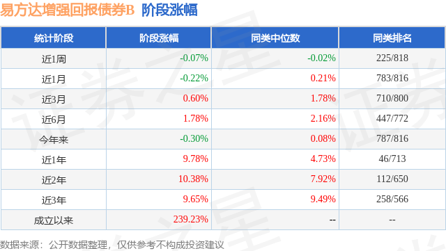 从业绩表现来看,易方达增强回报债券B基金过去一年净值涨幅为9.78%,在同类基金中排名46/713,同类基金过去一年净值涨幅中位数为4.73%。而基金过去一年的最大回撤为-1.75%,成立以来的最大回撤为-7.0%。