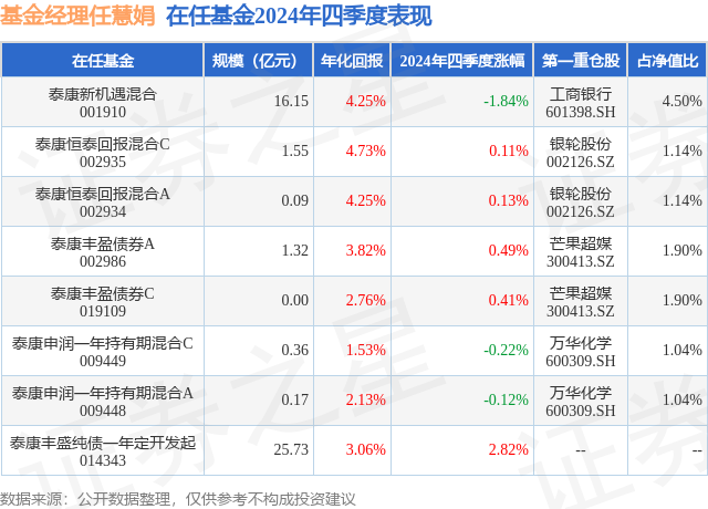 证券之星消息,日前泰康丰盈债券C基金公布四季报,2024年四季度最新规模0.0亿元,季度净值涨幅为0.41%。