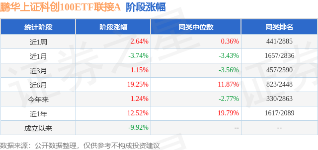 从业绩表现来看,鹏华上证科创100ETF联接A基金过去一年净值涨幅为12.52%,在同类基金中排名1617/2089,同类基金过去一年净值涨幅中位数为19.79%。而基金过去一年的最大回撤为-26.23%,成立以来的最大回撤为-34.51%。