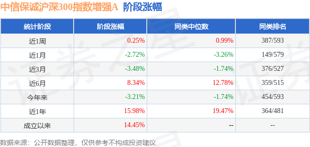 从业绩表现来看,中信保诚沪深300指数增强A基金过去一年净值涨幅为15.98%,在同类基金中排名364/481,同类基金过去一年净值涨幅中位数为19.47%。而基金过去一年的最大回撤为-12.07%,成立以来的最大回撤为-12.07%。