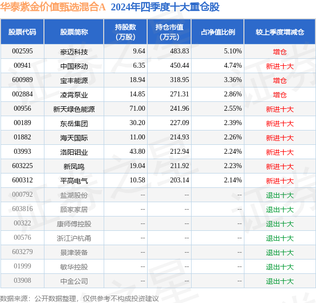 证券之星消息,日前华泰紫金价值甄选混合A基金公布四季报,2024年四季度最新规模0.13亿元,季度净值涨幅为-5.09%。