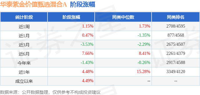 从业绩表现来看,华泰紫金价值甄选混合A基金过去一年净值涨幅为4.48%,在同类基金中排名3349/4120,同类基金过去一年净值涨幅中位数为15.28%。而基金过去一年的最大回撤为-14.08%,成立以来的最大回撤为-14.08%。