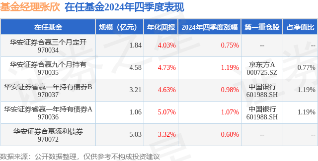 证券之星消息,日前华安证券睿赢一年持有债券A基金公布四季报,2024年四季度最新规模1.06亿元,季度净值涨幅为1.07%。