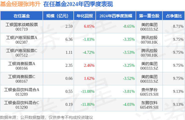 工银国家战略股票现任基金经理为张玮升,本季度增聘基金经理张玮升,近期离任的基金经理为陈小鹭。其中在任基金经理张玮升已从业7年又90天,2024年12月9日正式接手管理工银国家战略股票,任职期间累计回报为-5.27%。目前还管理着7只基金产品(包括A类和C类)。