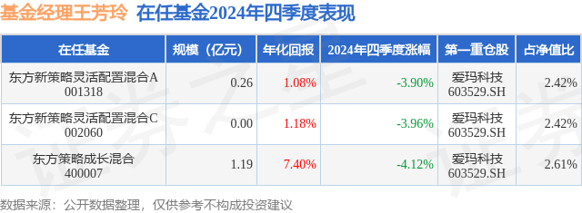 证券之星消息,日前东方新策略灵活配置混合C基金公布四季报,2024年四季度最新规模0.0亿元,季度净值涨幅为-3.96%。