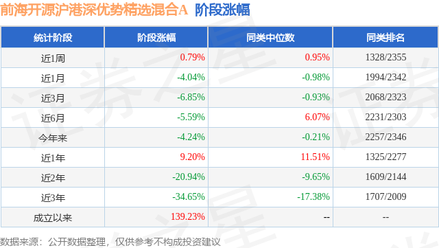 从业绩表现来看,前海开源沪港深优势精选混合A基金过去一年净值涨幅为9.2%,在同类基金中排名1325/2277,同类基金过去一年净值涨幅中位数为11.51%。而基金过去一年的最大回撤为-15.64%,成立以来的最大回撤为-58.44%。