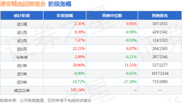 从业绩表现来看,诺安精选回报混合基金过去一年净值涨幅为20.8%,在同类基金中排名527/2277,同类基金过去一年净值涨幅中位数为11.51%。而基金过去一年的最大回撤为-20.41%,成立以来的最大回撤为-39.52%。