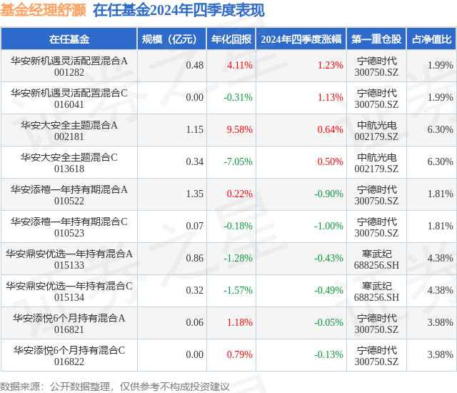 证券之星消息,日前华安大安全主题混合A基金公布四季报,2024年四季度最新规模1.15亿元,季度净值涨幅为0.64%。