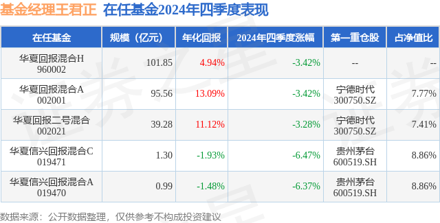 华夏回报二号混合现任基金经理为王君正。其中在任基金经理王君正已从业10年又295天,2023年5月4日正式接手管理华夏回报二号混合,任职期间累计回报为-8.68%。目前还管理着5只基金产品(包括A类和C类)。