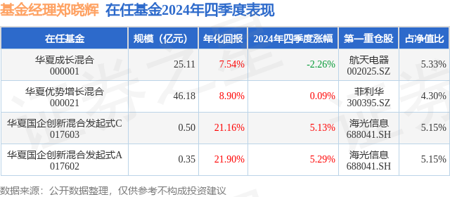 证券之星消息,日前华夏优势增长混合基金公布四季报,2024年四季度最新规模46.18亿元,季度净值涨幅为0.09%。