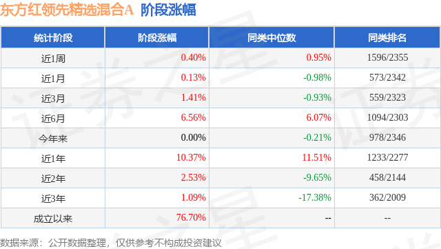 从业绩表现来看,东方红领先精选混合A基金过去一年净值涨幅为10.37%,在同类基金中排名1233/2277,同类基金过去一年净值涨幅中位数为11.51%。而基金过去一年的最大回撤为-5.33%,成立以来的最大回撤为-10.39%。