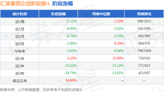 从业绩表现来看,汇添富国企创新股票A基金过去一年净值涨幅为4.25%,在同类基金中排名726/926,同类基金过去一年净值涨幅中位数为15.69%。而基金过去一年的最大回撤为-16.52%,成立以来的最大回撤为-44.85%。