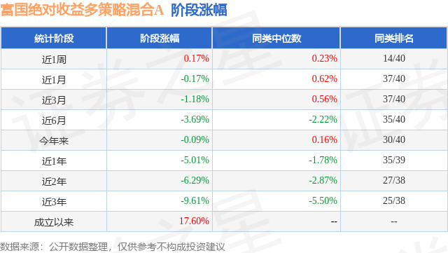 从业绩表现来看,富国绝对收益多策略混合A基金过去一年净值涨幅为-5.01%,在同类基金中排名35/39,同类基金过去一年净值涨幅中位数为-1.78%。而基金过去一年的最大回撤为-6.48%,成立以来的最大回撤为-15.66%。