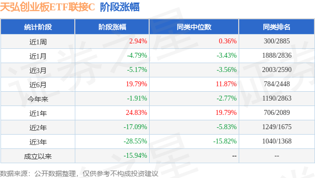 从业绩表现来看,天弘创业板ETF联接C基金过去一年净值涨幅为24.83%,在同类基金中排名706/2089,同类基金过去一年净值涨幅中位数为19.79%。而基金过去一年的最大回撤为-21.14%,成立以来的最大回撤为-58.82%。