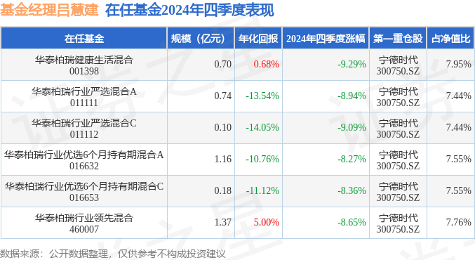 证券之星消息,日前华泰柏瑞健康生活混合基金公布四季报,2024年四季度最新规模0.7亿元,季度净值涨幅为-9.29%。