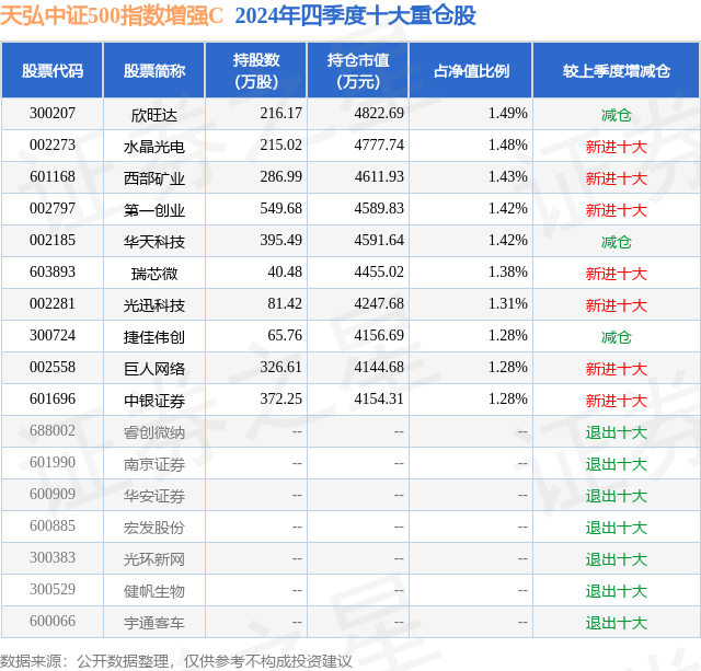 证券之星消息,日前天弘中证500指数增强C基金公布四季报,2024年四季度最新规模10.39亿元,季度净值涨幅为0.27%。